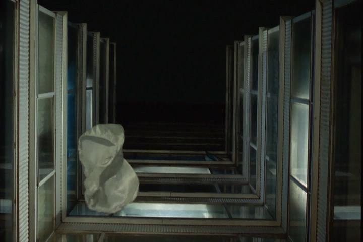 Los caifanes marcaron época con su intervención en la Diana Cazadora, en Sólo con tu pareja un gesto similar está descrito por una toma en contrapicada que captura poéticamente la caída de los calzones de Clarisa por la fachada nocturna de la Torre Latinoamericana (Fig.4) desde el mirador hasta las manos del vigilante que los sostiene mientras recuerda que “la Diana Cazadora amaneció con un sostén” (Fig. 2)